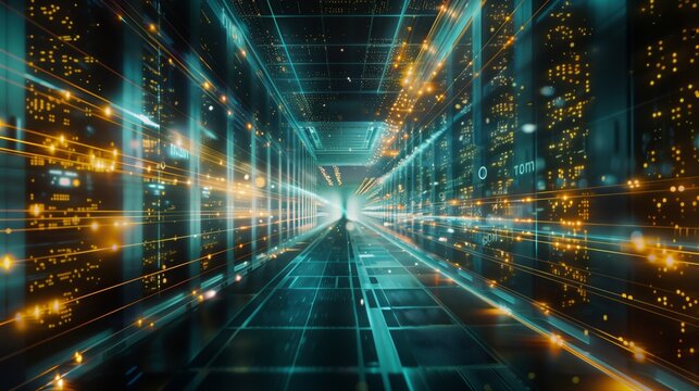 Futuristic data systems in modern server room