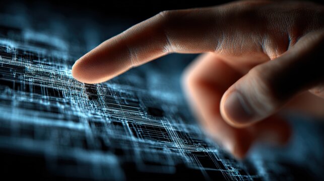 Finger Interacting with a Digital Interface Representing Advanced Technology and Connectivity, Emphasizing Precision and Innovation