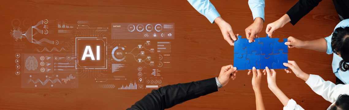 AI agent performance data being analyzed by a user using futuristic interface with circular chart and tech icons, representing artificial intelligence and digital transformation in business.