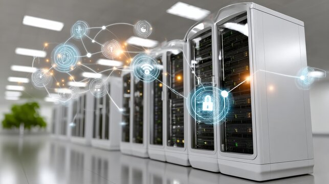 Enhance digital security in an abstract server room futuristic environment control interface concept