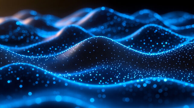 Futuristic digital network with glowing blue nodes connected by lines, symbolizing data exchange, connectivity, and advanced technology in a dark, high-tech environment