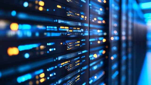 Modern Businesswoman in Server Room Analyzing Real-time Data Analytics on Digital Interface among Computer Servers