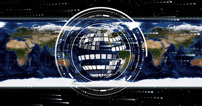 Image of globe with data processing over world map