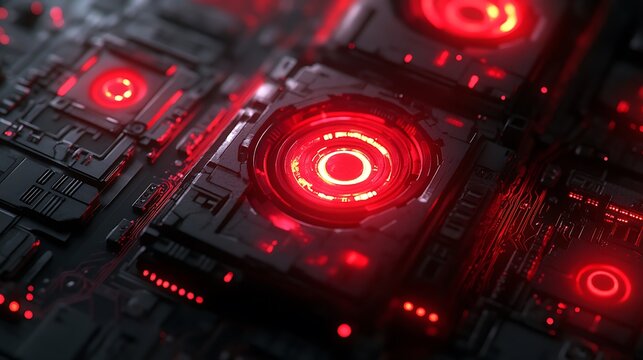 A futuristic data center hallway illuminated by vibrant red and blue lights. Ideal for tech companies showcasing server infrastructure or creating a cyberpunk aesthetic.