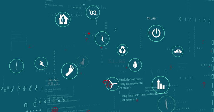 Image of multiple digital icons, symbols and data processing against blue background