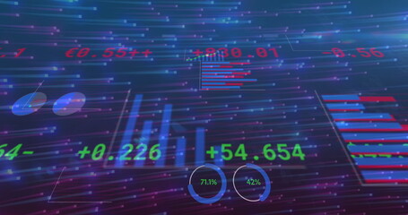 Image of hexagons and molecules over data processing with scope scanning on black background