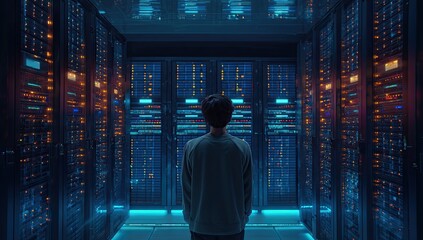Person standing in a server room