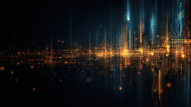 A futuristic depiction of data flow across a circuit board. It's ideal for use in tech presentations or website backgrounds highlighting innovative technology.