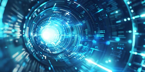 Futuristic digital tunnel with neon lights and data, mesmerizing visual journey