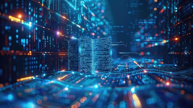 Futuristic digital data stream with binary interface