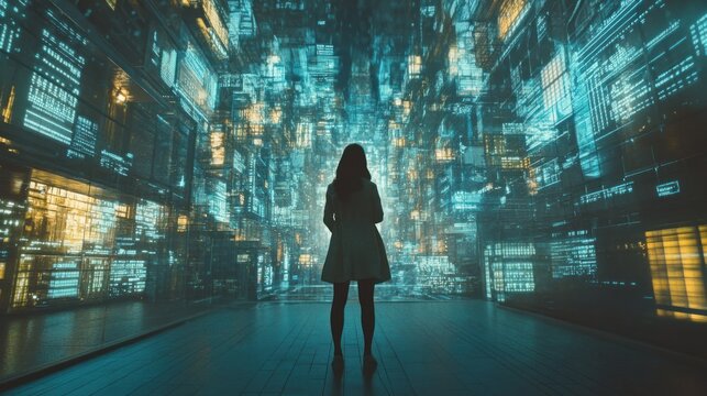 Futuristic holographic interface with digital data streams