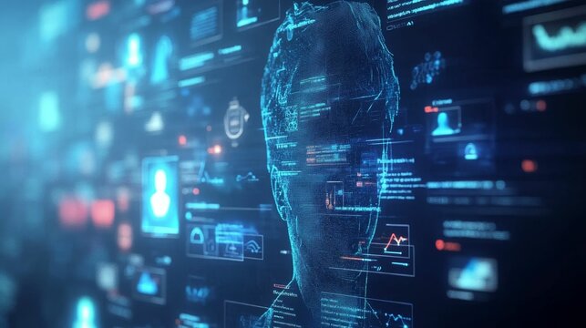 Futuristic abstract HUD interface with glowing holographic elements and data streams Symbolizing advanced technology artificial intelligence and digital innovation in a sci-fi virtual environment