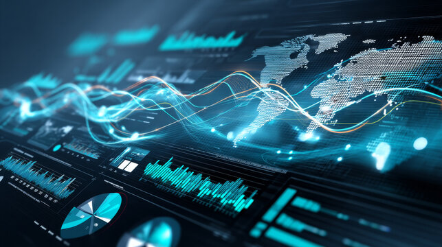 Futuristic Data Visualization Dashboard With World Map And Graphs Images