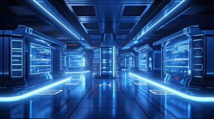 Server Rack Corridor - Data Center Interior - Tech Background - Digital Futuristic