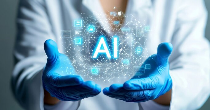 Scientist Presenting Futuristic AI Technology Through Holographic Interface