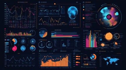 Futuristic Data Visualization Interface With Graphs And World Map Images