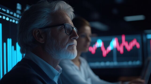 Futuristic data visualization interface showing graphs and analytics