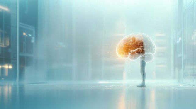 Merging human intelligence and ai chips a glowing symbiosis in a futuristic laboratory digital art surreal environment abstract perspective