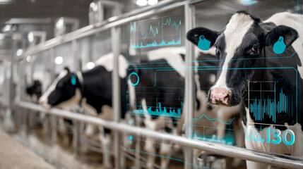 Solar power plant at sunset with futuristic digital energy analytics interface
