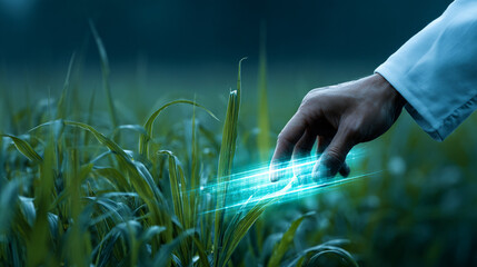 sustainable future concept with glowing earth in a lush forest and data visualization.