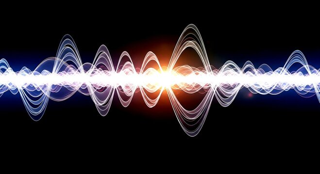 Abstract luminous waveform pattern against a dark background, radiating light from its center