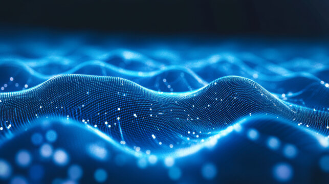 Vibrant blue digital waves create a stunning visual representation of data in an abstract design