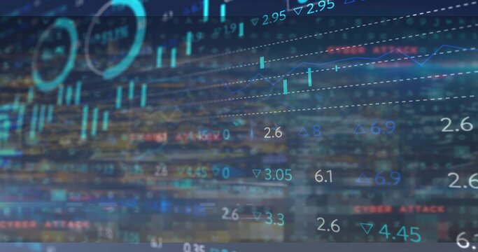 Futuristic Data Visualization Over Blurred Cityscapes Images