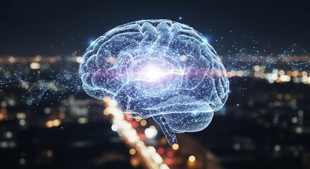 Artificial Intelligence Brain Network over Cityscape at Night Technology Concept