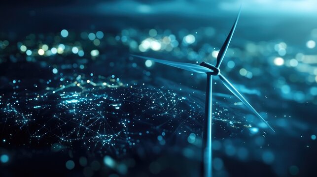 Futuristic renewable energy innovations with wind turbines and digital analytics