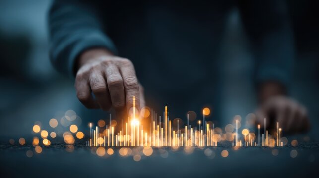 A hand interacts with a glowing soundwave visualization, blending technology and creativity in a captivating digital composition.