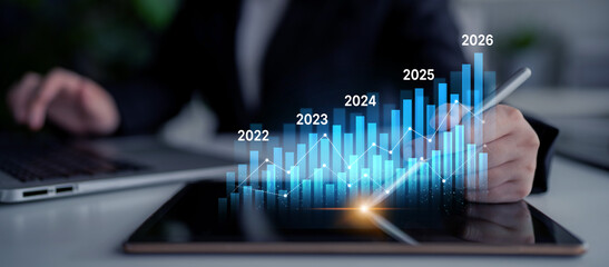 Business bar chart and line graph showing yearly business growth from 2022 to new year 2026, represent data analytics, future 2026 planning, business 2026 trend, and performance analysis 2026 Latch