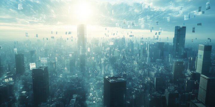 Futuristic cityscape with technology and data visualization overlay
