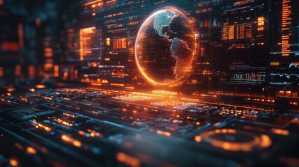 Glowing Digital Globe: Global Data Visualization with Futuristic Style