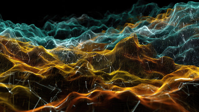 Abstract Technology Landscape with Golden Accents: Data Visualization and Futuristic Design