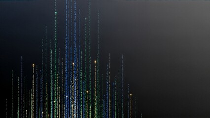 Vibrant abstract digital landscape with neon colors and data patterns showcasing technological themes