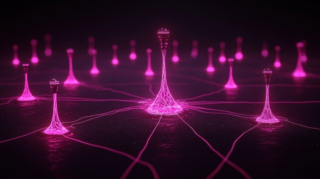 Futuristic Network: Interconnected Nodes in a Pink Glow