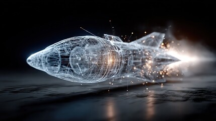Rocket launching in space digital art dynamic visualization dark background futuristic concept for technology enthusiasts