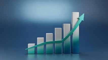 Blue and white gradient bar chart with green arrow showing growth increase