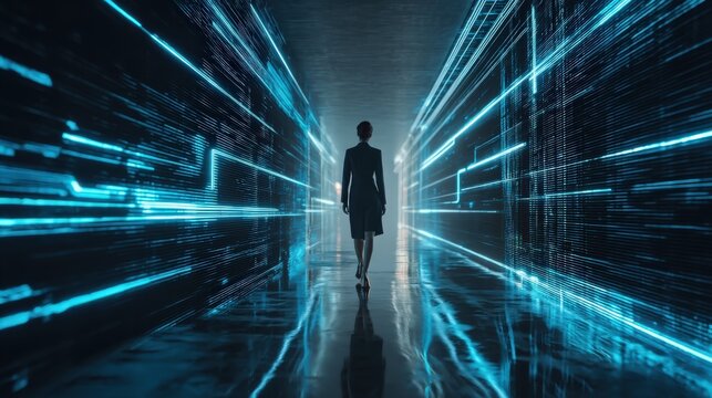 Innovative Data Visualization for Business Insights, Professional analyzes holographic data visualizations and graphs, highlighting trends and metrics for informed decision-making in modern business