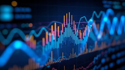 Digital data visualization with bar charts and lines
