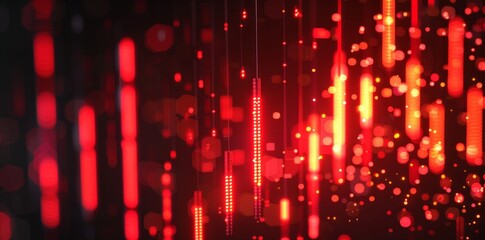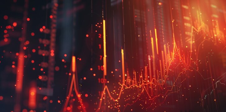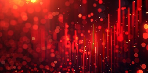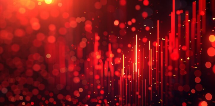 Red stock market graph background with bokeh lights and holographic elements for a financial business concept.