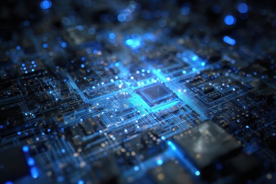 Futuristic digital circuitry with glowing nodes and abstract lights
