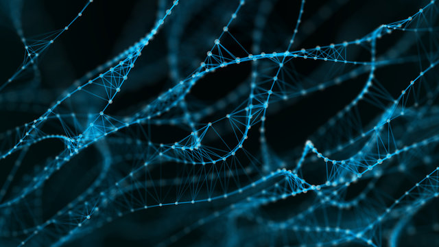Futuristic digital network mesh in cyberspace with glowing nodes