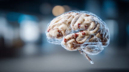 An abstract representation of a human brain, showcasing neural connections and thoughts in a futuristic digital style.