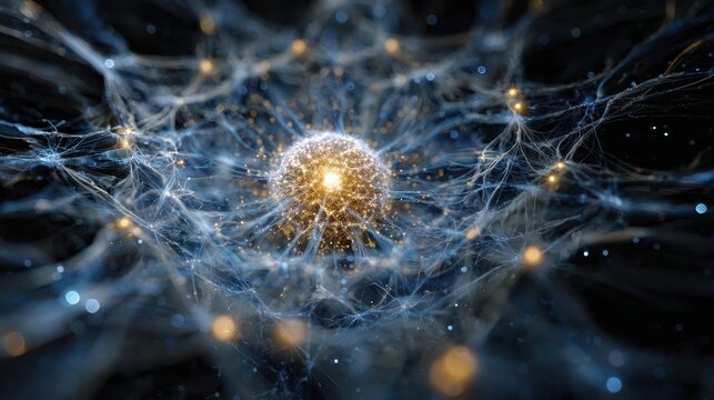 Digital visualization of a glowing brain concept with neural connections and lights