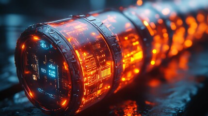 Futuristic digital cityscape with glowing neon elements and abstract architecture