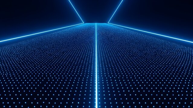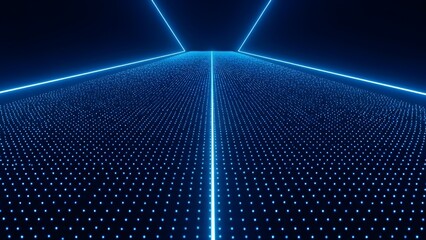 Neon blue digital matrix background with glowing lines