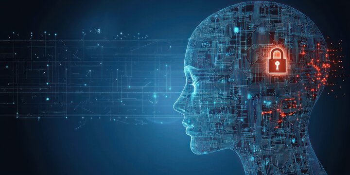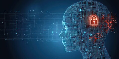 Futuristic digital human profile with glowing blue neural network