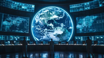 Futuristic control panel displaying global data.