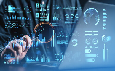 Modern digital representation of financial data with glowing lines and graphs depicting market trends and analysis